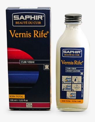 We recommend you apply Saphir Rife Liquid Varnish in small quantities to varnished surfaces only, using the cloth provided. Leave for 3 minutes and wipe with a clean and dry cloth to remove the white film that has formed.