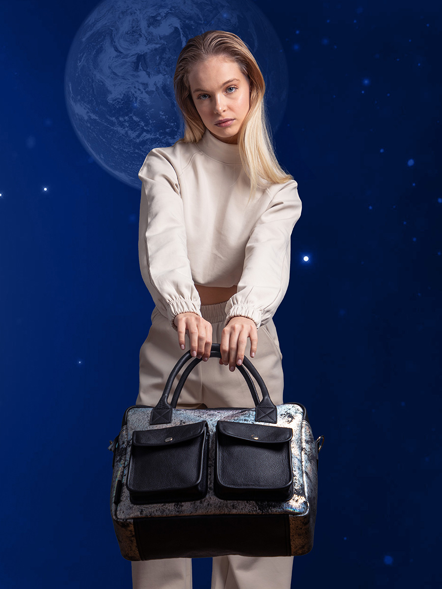 The dark tones and rich texture of the GALAXIE Collection will enhance your charisma. Your legendary mystery and practicality will be perfectly enhanced by the small LeMini Indispensable shoulder bag.