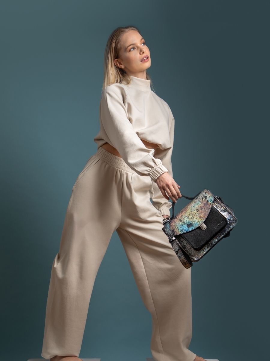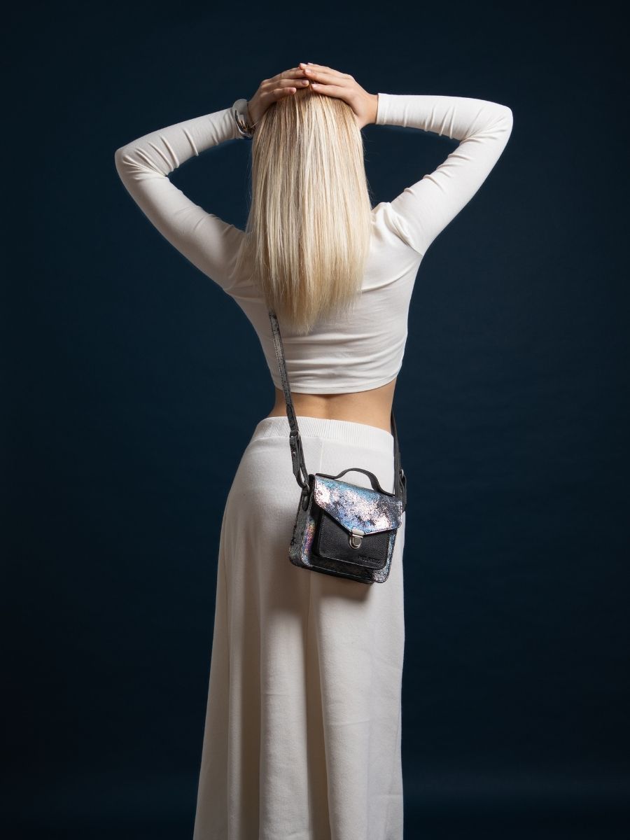 The holographic cowhide leather of the GALAXIE Collection will be your ally. The Suzon M soft leather shoulder bag will be your ideal companion!